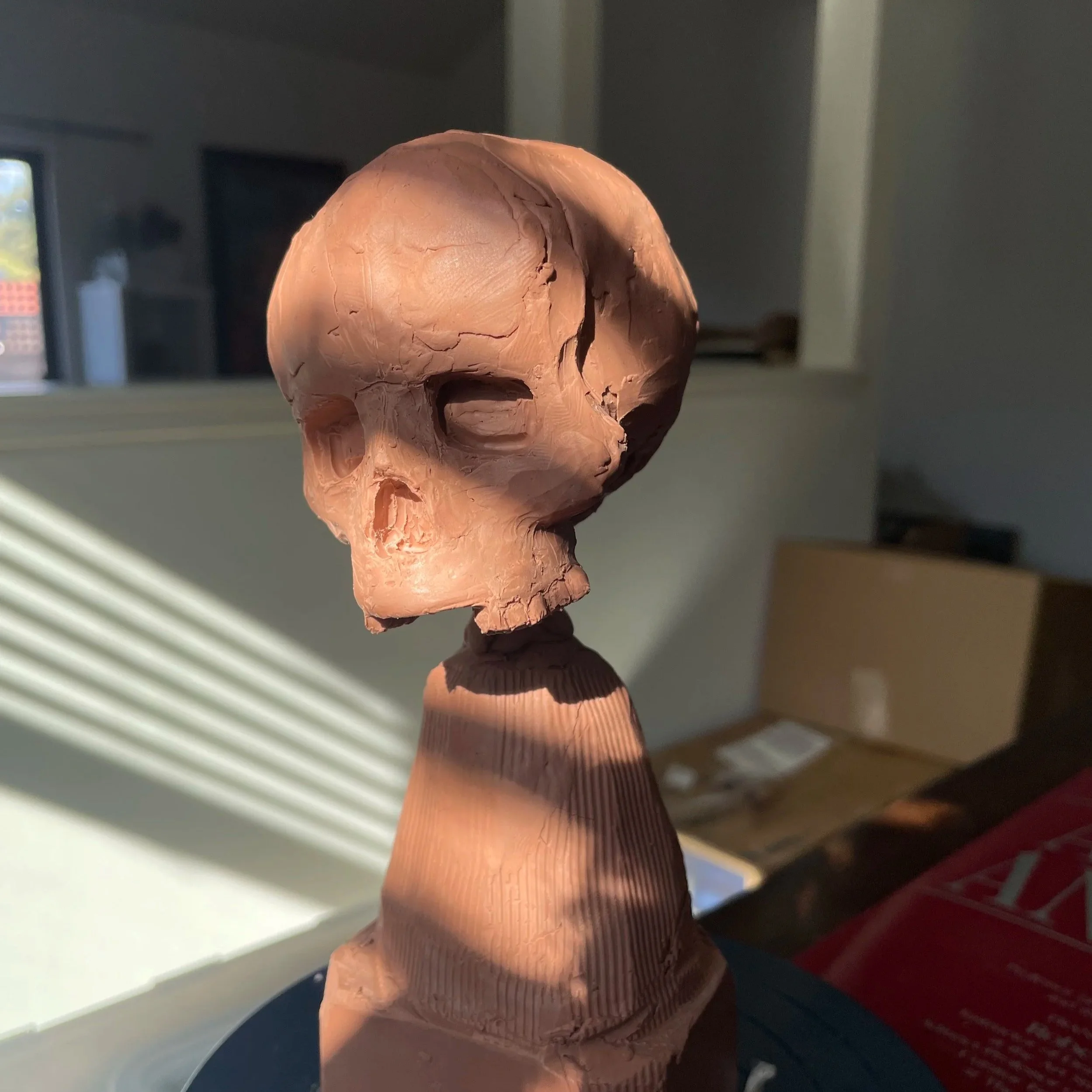 There’s a video floating around recommending figure artists pickup the book Artistic Anatomy by Dr. Paul Richer. The first half of the book describes the form of the human body, the second half features detailed illustrations (called “plates”) of bones, muscles, and the exterior form. But when the book arrived, I realized the plates are all of the male form, and all my projects are of women. The sex of your reference doesn’t matter much if you’re only making bones, so I’m studying a skull to use my new book